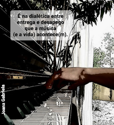 Quando tocamos piano, há uma dualidade que nem sempre é fácil de gerir: um envolvimento e entrega absoluta a cada nota que se toca e, simultaneamente, uma certa distância e abstração do resultado daquilo que se está a fazer. Ou seja, o nosso estado de presença é imperativo, e é por isso que, num aparente paradoxo, precisamos da tal abstração: não podemos nem celebrar a nota que foi extremamente bem tocada e nem lamentar a nota que errámos. Em qualquer um dos casos, perdemos a concentração (presença), e arriscamos errar em seguida. Além disso, a nota que acabámos de tocar já não é passível de ser modificada. O nosso foco tem de ser sempre a nota seguinte, que é a única em que podemos agir.